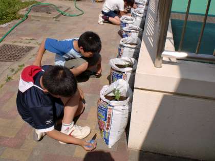 5月19日(木)の5時間目,トマトの苗を植えました。