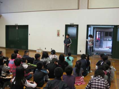 体育館で出発式をした後,先生方に見送られて学校を出発しました。