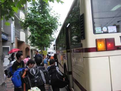 御前四条でバスに。ここで見送りのおうちの方たちともお別れです。