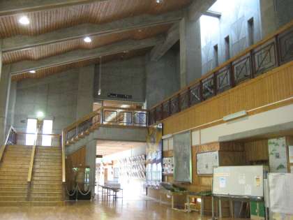 左が,本館の玄関を入ったところのエントランスホール。広々とした吹き抜けになっています。