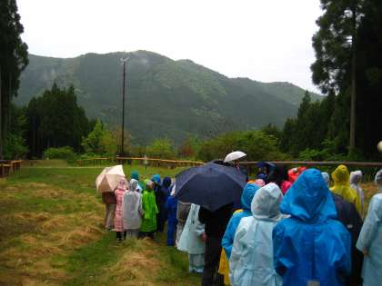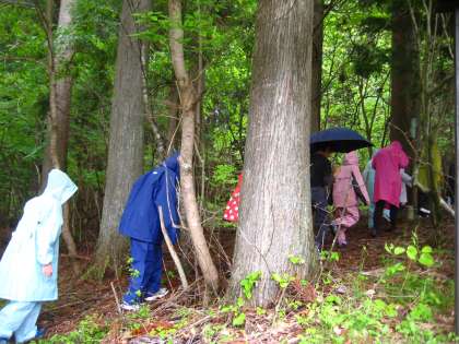 雨はやみません。でも,山の家での一つ目の活動,自然観察会を予定通り行いました。