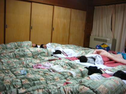 まだ1日目。子どもたちはホームシックにはまだなっていないようです。それより,友だちと過ごす夜,うれしくて寝られないかも。