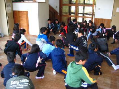 今日の朝のつどいは朱七校だけで行いました。元気な声で校歌を歌い,体操をしました。