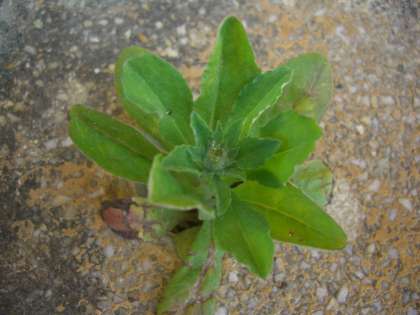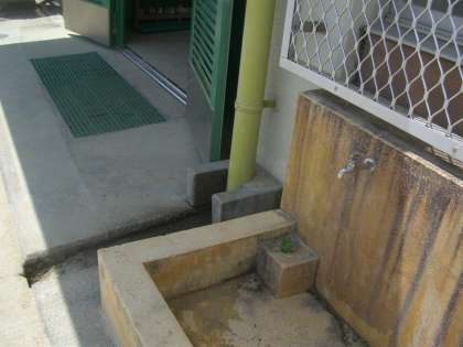 下の写真を見てください。わかりますか?実は、北校舎西入口前の手洗い場にある穴の中。去年の3年生が取り組んだ《まちくさマップ》の方法で、「スッポリソウ」と名前をつけました。野草の生命力は、すごいですね。