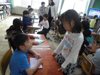 2年生は,生活科「あそんで ためして くふうして」の学習で,12月20日(金)2時間目に体育館で「わくわくクリスマスフェスティバル」をします。ゲームなどのいろいろなコーナーを作って,1年生と北総合支援学校の友達を招待します。3組は,交流学級の友達と一緒に「まとあてやさん」をします。今日は,招待状を作ってわくわくグループのの友達に渡しに行きました。北総合支援学校の友達にも招待状を届けます。当日が来るのを楽しみに準備をしています。