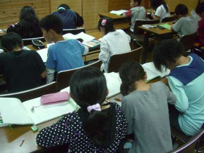 川のせせらぎの音を聞きながら,家族への手紙を書きました。一面言葉で書いたり,イラストで描いたり。これまで活動がいっぱいあったので,いろいろ迷って書いているようでした。