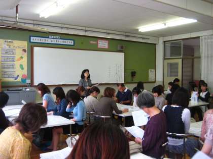 まず,栄養教諭の中野先生から学校給食についてのお話を聞きました。「食べるということは,意欲の始まり」という言葉から始まって,子育てにかかわるお話まで,楽しいエピソードを交え,お話していただきました。
