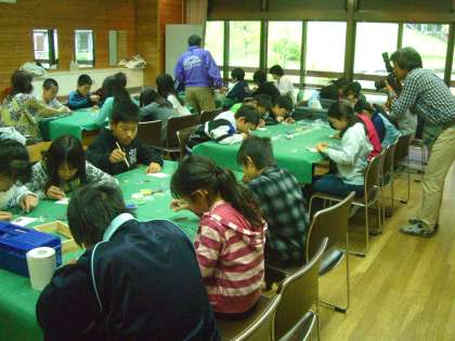 五日間の活動の思い出に,七宝焼きをしました。初めてやることなので,疲れているのですが指導の先生の話に聞き入っていました。