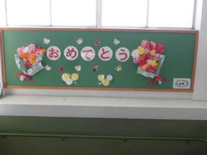 今回の「おめでとうがいっぱい」は,委員会の掲示板,6年生,5年生です。