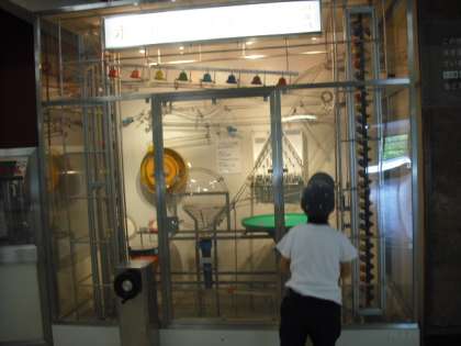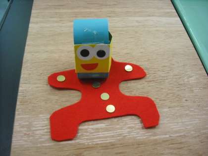 実験室では「でんぐり返り人形」をつくり,おかしなリズムで坂を転がる人形をいろいろな角度の坂で転がして楽しみました。