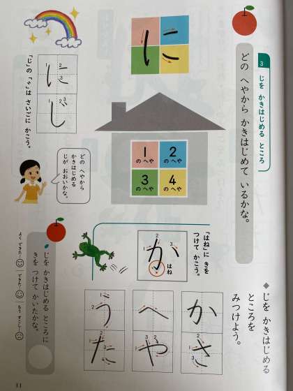 よくみて,じを かきはじめるところを みつけよう。
