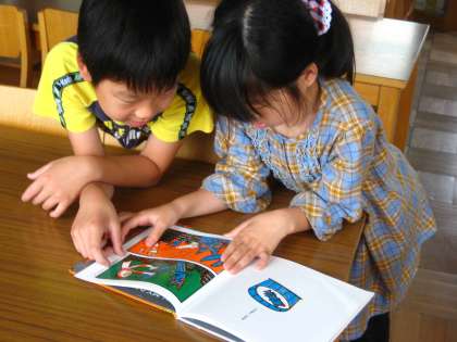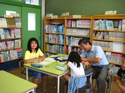 今日は特別,校長先生も勉強をみてくださいました。今日は珍しく,勉強が終わった子から隣の図書室で読書をし始めました。大きい子が小さい子に本を読んでやっている場面も。
