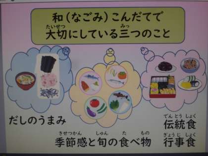 平成25年12月に「和食」がユネスコの世界無形文化遺産に登録されたことを受け,京都市小学校給食では,和食のよさを伝えていく取組を始めました。