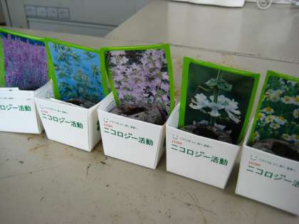 出前授業に来ていただく企業の方が,エコの取組の一つとして,ハーブの栽培セットをくださいました。さっそく挑戦です。