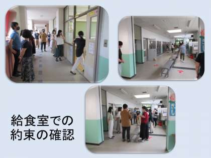 来週からも隔日登校ですが,給食も始まります。教員みんなで,給食室での約束を確認しました。感染症予防のために,気を付けることを共通理解しました。