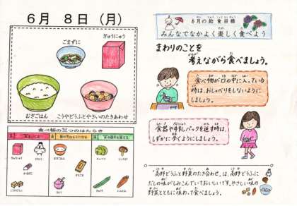 また,本日から給食も始まりました。スプーンや口拭きタオルなど,ご家庭で用意していただきありがとうございます。学校でもこれまで以上に,感染予防には気を付けていきたいと思います。