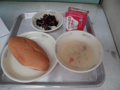 今年度初めてのパンの給食でした。ひじきのソテーは豆がたくさん入っていておいしかったです。