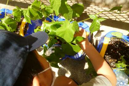 このところの気温の高さが影響してか,朝顔の成長が目覚ましく,本葉も大きく育ってきたため,追肥をしました。
