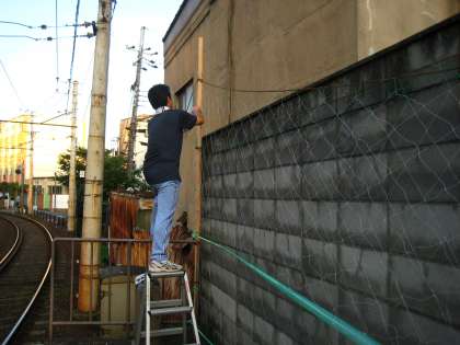 今日はその準備に,西院駅に行きました。校長先生は手馴れたもので,2段のネットを見る間に張っていかれました。これで,準備万端。どうか雨が降りませんように!