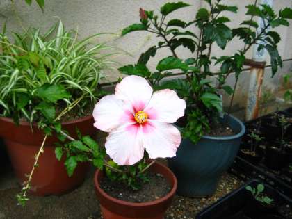 先日お伝えしたひょうたんもあれから1メートル以上伸びました。地域の方からいただいたハイビスカスには美しい花が咲きました。