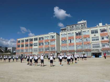 先週は台風が接近していたところもありましたが,今日は爽やかな秋晴れとなりました。子どもたちは青空の下で元気に「朱七オリンピック2020」に向かって力いっぱいに練習をがんばっています。