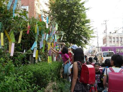 朝の正門横にきれいに飾り付けられた笹が並び,登校してくる子どもたちを華やかに迎えてくれました。