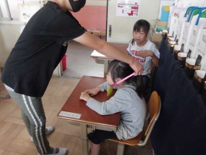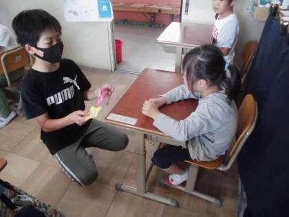 全力を出し切った,朱七オリンピック2020は,アイビーペアの友達も観戦して応援してくれていました。1年1組の教室に6年2組の友達が来てくれました。アイビーペアの友達からコメントと金メダルをもらいました。もらうときは恥ずかしそうにしていましたが,とっても嬉しかったようです。