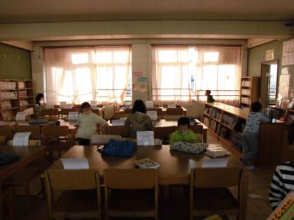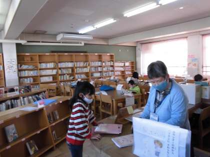 図書室で夢中になって本をさがす子どもたちです。さまざまな世界との出会いが成長する子どもたちだからこそ,豊かに感じとれるものがあると思います。