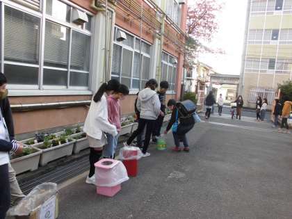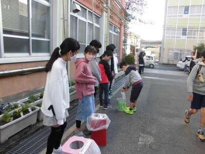 11月17日は,朝のあいさつ運動と環境の日でした。あいさつ運動は「ハッピープラン委員会」が,環境の日は「朱七クリーンエコにこ委員会」が取り組んでいます。