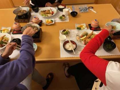 慶野松原荘の方々が温かいご飯を作って待っていて下さいました。