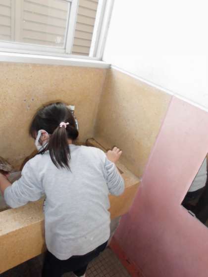 先日,廊下を通りかかると3組が手洗い場をきれいにしていました。手洗い場は,みんなが手洗いするためによく使っています。みんなのために気持ち良く使っていけるように活動することは素晴らしいです。心も洗われます。