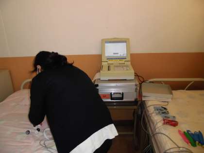心電図検査が始まると,待っている時はお互いに静かにと合図をしている姿があり,落ち着いた態度で受けていました。検査の方に「上手にうけられましたね。」と言ってくださいました。
