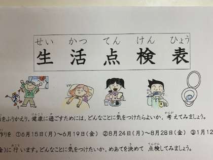 基本的な生活習慣を身につけ,生活リズムを整えることが健康や安全につながると考えています。目標を一人ひとり決めて,子どもたちが決まった目標に進んで取り組むためにおうちの方の励ましメッセージを宜しくお願い致します。生活をふり返り,体も心も生き生きとした毎日を過ごしてほしいと願っています。規則正しい生活で免疫力を高めましょう。