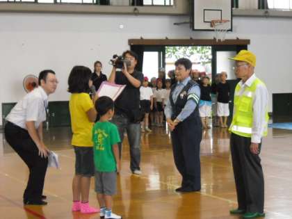 いつも登下校の安全を見守ってくださっている見守り隊の方と堀川署の警察官に子どもたちから感謝状が贈られました。