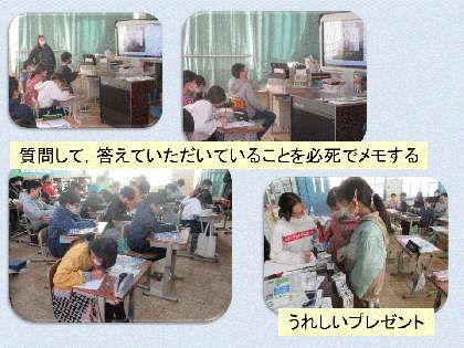 最後には子どもたちからの質問に,丁寧に答えてくださいました。子どもたちは,その言葉をもらさないようにと,必死にメモしていました。