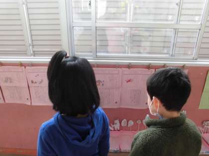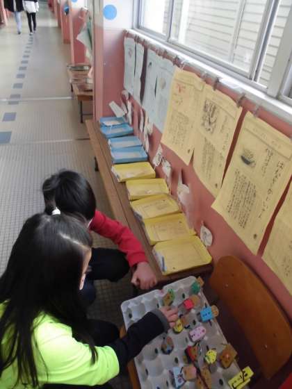 1年生の教室の前の掲示では「むかしばなし」の魅力にあふれています。