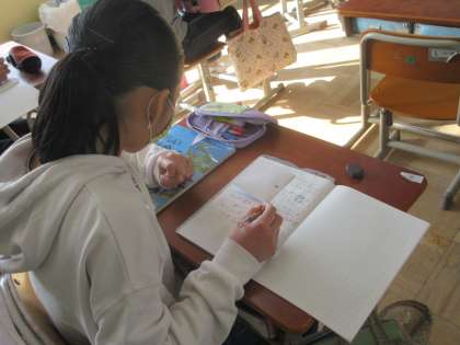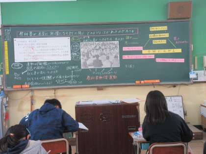 この学習を通して,「あたりまえのように使っていた教科書には昔の人の思いがつまっていること。」,「学校に行けていることに感謝したい。」,「中学校で教科書をもらったときには,丁寧に名前を書きたい。」と,振り返る姿がみられました。