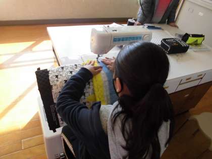ミシンを使う時は,安全に気を付けながら真剣な眼差しで縫い始めていました。