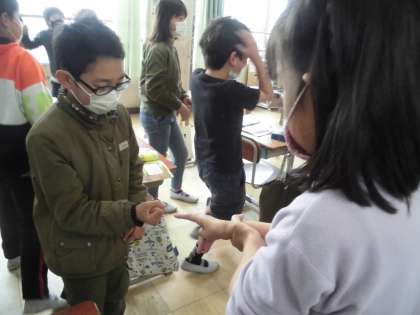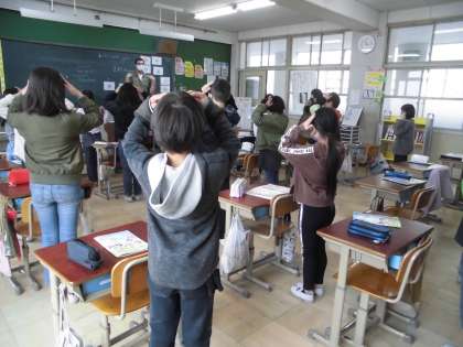 「Simon says」という言葉がなくて命令したときは,その命令に従ってはいけないというルールです。とてもExcitingに楽しむことができました。