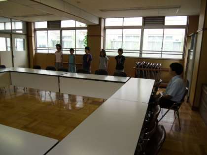 今,その発表に向けて,代表の子5人が練習をしています。今日は,ちょうど学校訪問に来られた名古屋の先生の前で,発表のリハーサル。