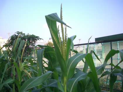 でも、この暑さの中で頑張っているものがありました。6年生のポップコーンです。さすが、暑い地方の植物だと思います。そのポップコーンにも、雄花が咲き始めました。子ども達がいない間に、どんどん成長しています。