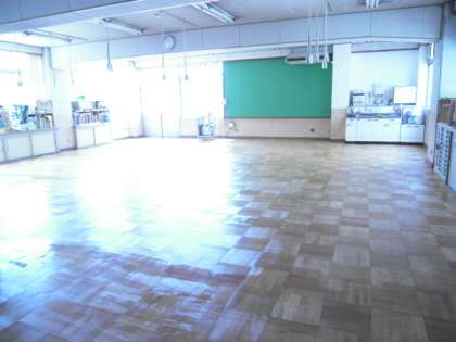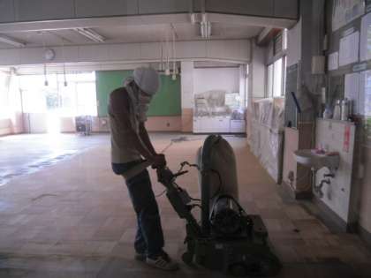 昨日から始まった職員室の床の研磨が今日完了。きたなかった床がきれいに削られました。