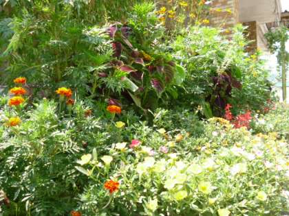 朝水遣りをした後の玄関前の花たちです。水をもらって生き生きしています。きっと1日のうちで一番うれしい時間です。これから,あの夏の強い陽射しに絶えなければなりません。がんばれ!