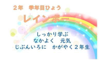 学年目標は,「レインボー ・しっかり学ぶ・なかよく元気・じぶんいろにかがやく2年生」です。