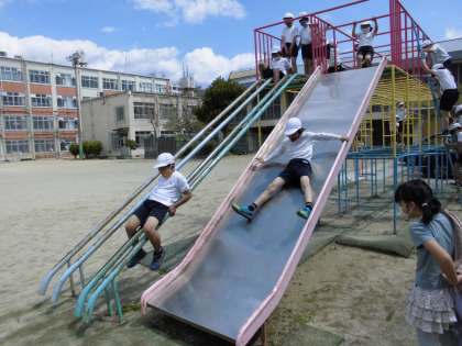常に体を3点で支えることや,すべり台をするときは,下に友達がいないか確かめて滑ることなどを確認しました。休み時間にも遊べるようになるのでみんな大喜びでした。