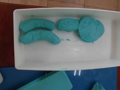 粘土を使ってお弁当を作りました。まるめたり,ねじったり,ひもにしたり,ひらたくしてへらできったりしながら作りました。ハンバーグやたこさんウインナー,玉子焼きなどみんなとてもじょうずに作って楽しんでいました。