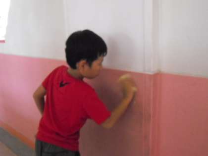 2時間目は大掃除。夏休みの間にたまった埃をみんなできれいにします。あわせて行われたPTAの清掃活動では,保護者の方たちがトイレや普段子どもたちができないところを中心に,一緒に汗を流してくださいました。