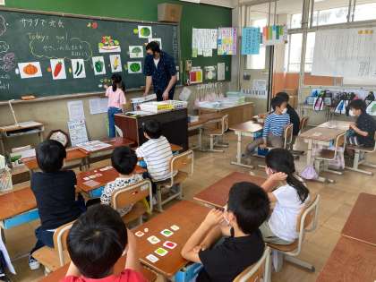 今日は,英語の授業を行いました。サラダを作る会話を英語で行えるよう,野菜の名前を覚えました。野菜の名前を覚えるための,ポインティングゲームや並べ替えゲームに楽しみながら取り組むことができました。