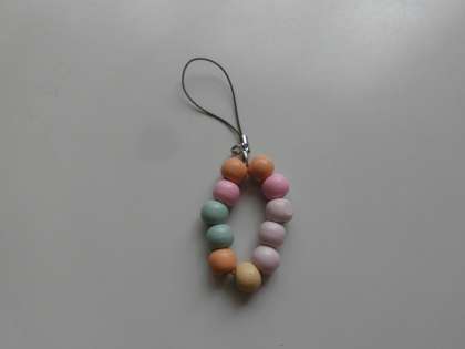 自立活動では,手指を使う活動としてビーズ通しをしています。大きめの穴の木製ビーズと細めのゴムを使って通していきます。ゴムの先には,セロハンテープを巻いて穴に通しやすくします。ストラップにしてお家に持って帰りました。