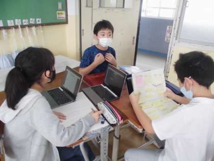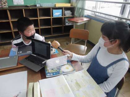 さらに,今年度より本格的に使用している一人一台タブレット(GIGA端末)をフルに活用し,インタビューの様子を録画し,確認し合うという活動も行いました。